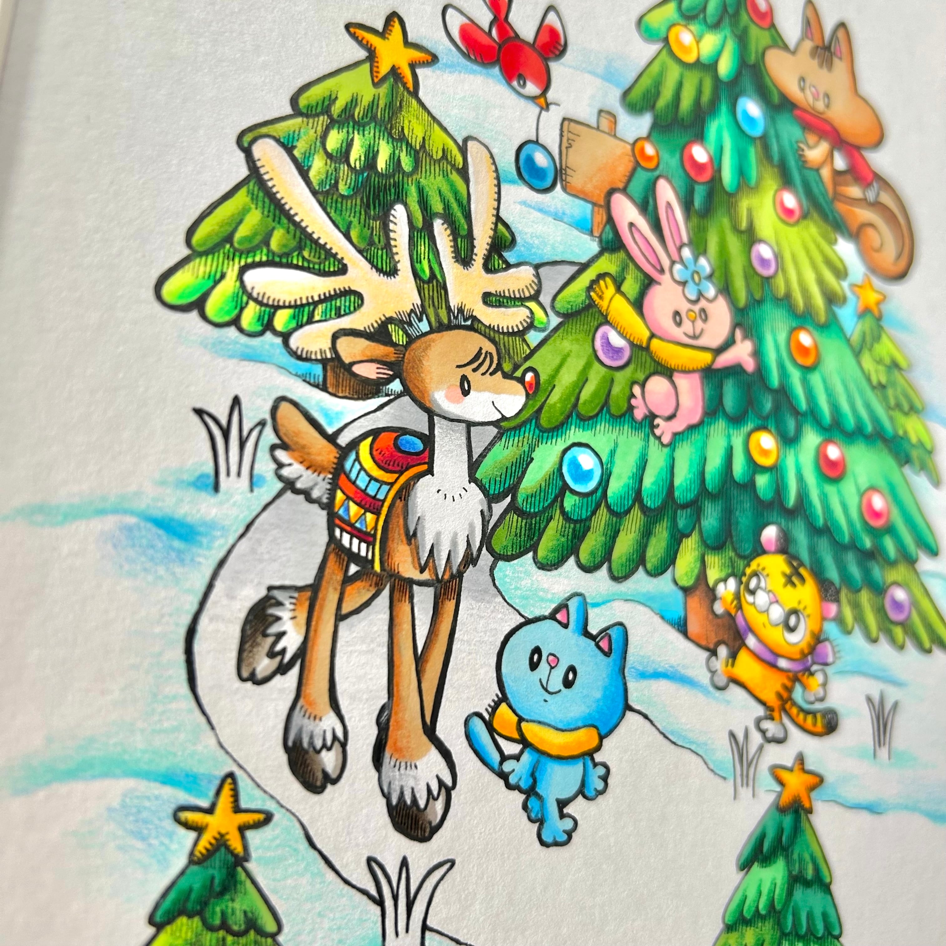 トナカイさんも素敵なツリーの飾り付けを眺めて、みんなでワクワクしながらクリスマスを待っています。