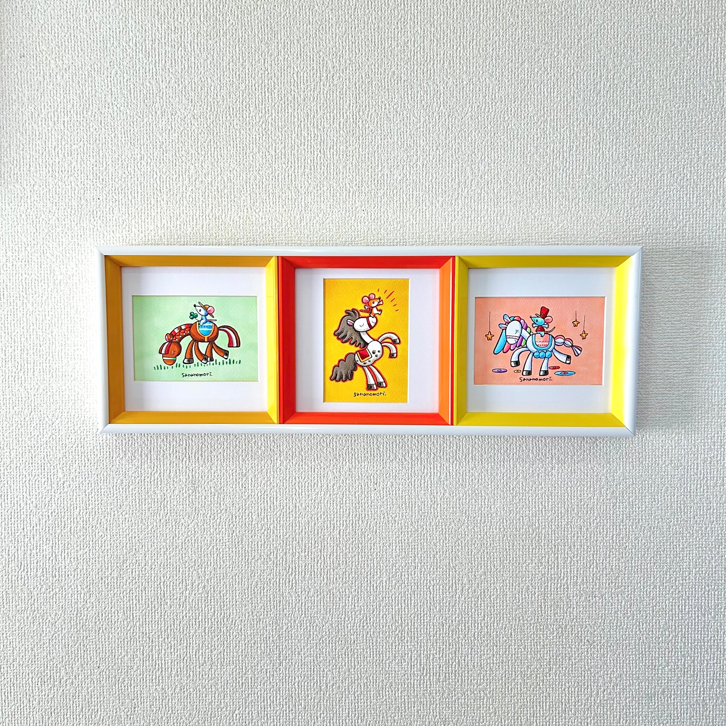 3連の可愛らしい額に3つの願いをこめて素敵な年が送れるように描かれた作品です。