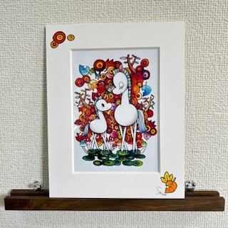 ペーパースタンドの縁のイラストとサインは手描きです。(手描きイラストはイメージになります)